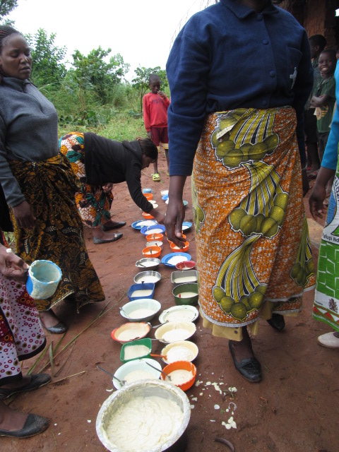 Last week, a girls’ secondary school about 2 hours north of Blantyre, was closed because of protests from the students. The details are sketchy, but the young women were upset with the food (nsima, beans, relish — the local standard meal) and trashed the place. Many Malawians and even Africans in general exist on one meal a day, so this school-supplied meal was probably pretty important to the young women. A couple of years ago, I saw some primary school kids eating a meal at a school in Malawi.